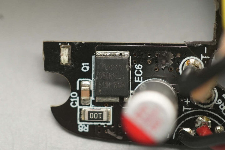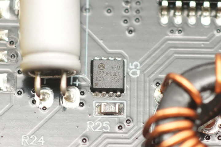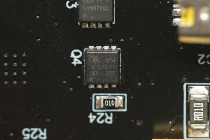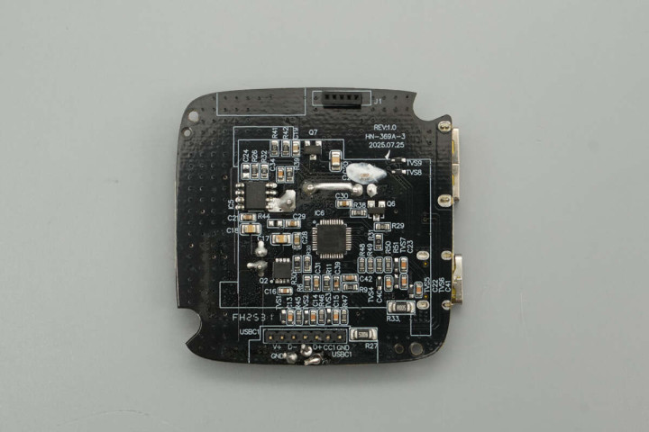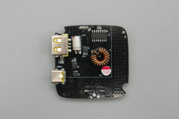 最后一块PCBA正面设有降压电感、滤波固态电容、MCU以及VBUS开关管。