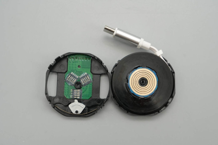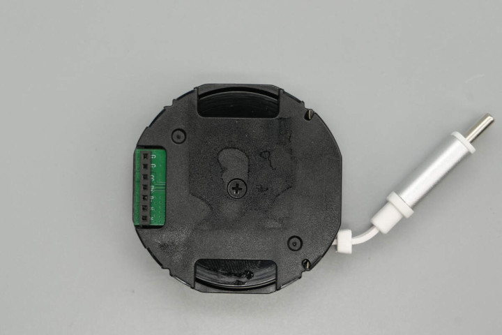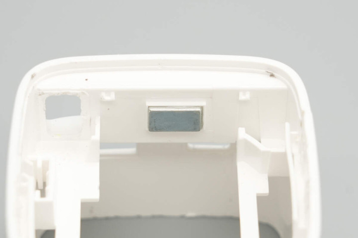将拉拉线模块和数显屏模块也取出,壳体内侧对应拉拉线端子处固定一颗小磁铁用于吸附收纳拉拉线端子。