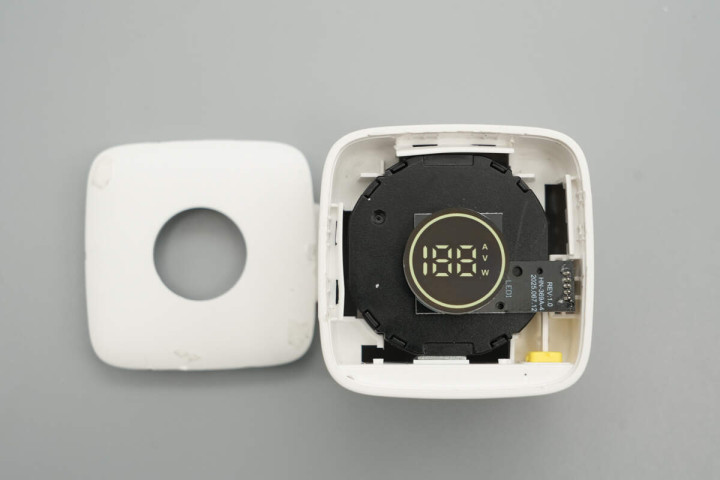 拆掉顶部外壳,壳体对应数显屏区域镂空,内部拉拉线模块通过四端定位板固定,顶部放置数显屏模块。