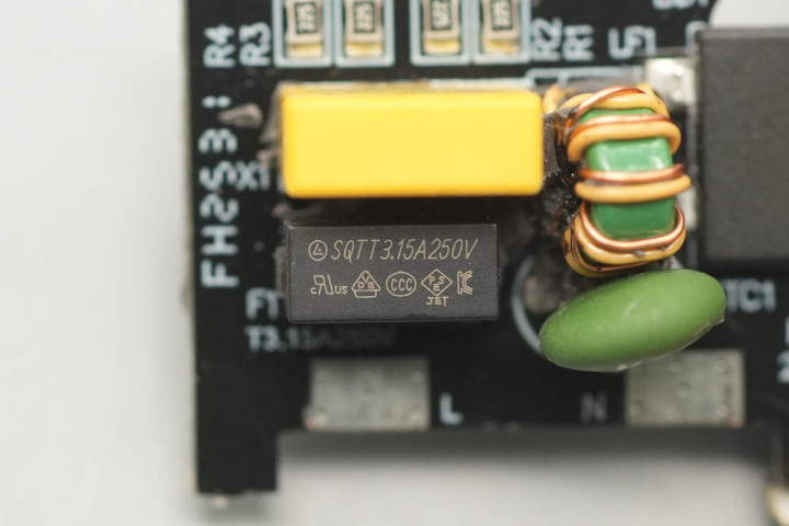 延时保险丝特写,规格为3.15A 250V。