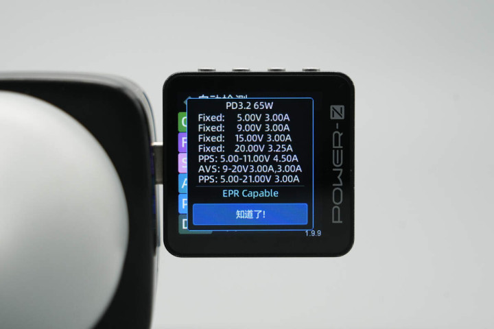 支持PD3.2快充版本,实测USB-C口支持65W PD3.2快充,并具备9-20V3A SPR AVS电压档位。