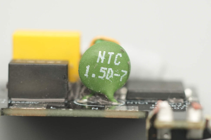 NTC热敏电阻特写,用于抑制上电浪涌电流。