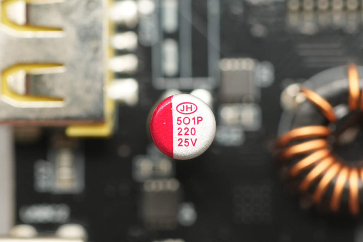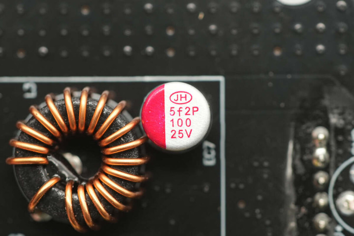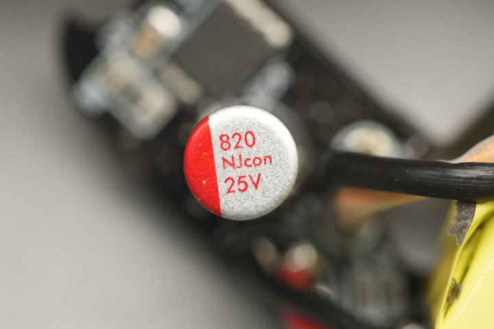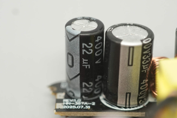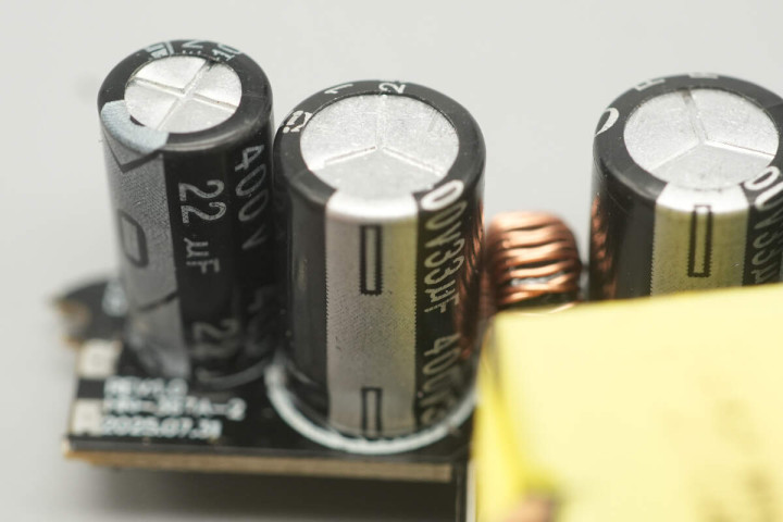 输出滤波固态电容来自NJcon永立,规格为25V820μF。