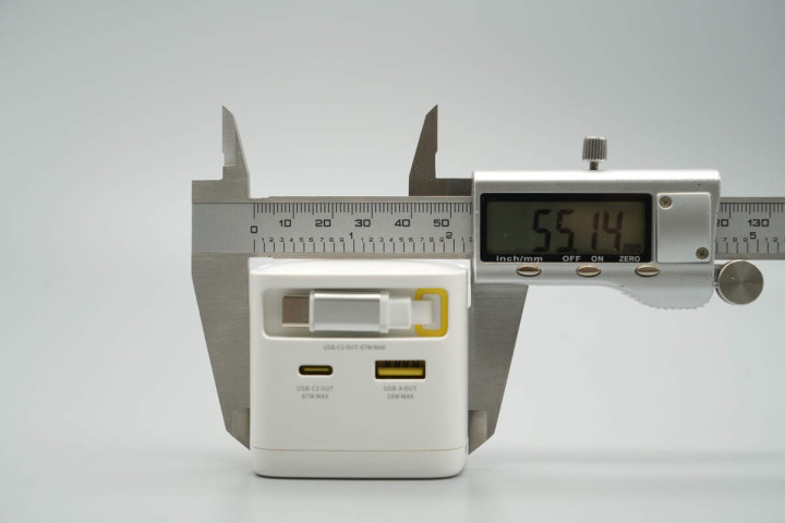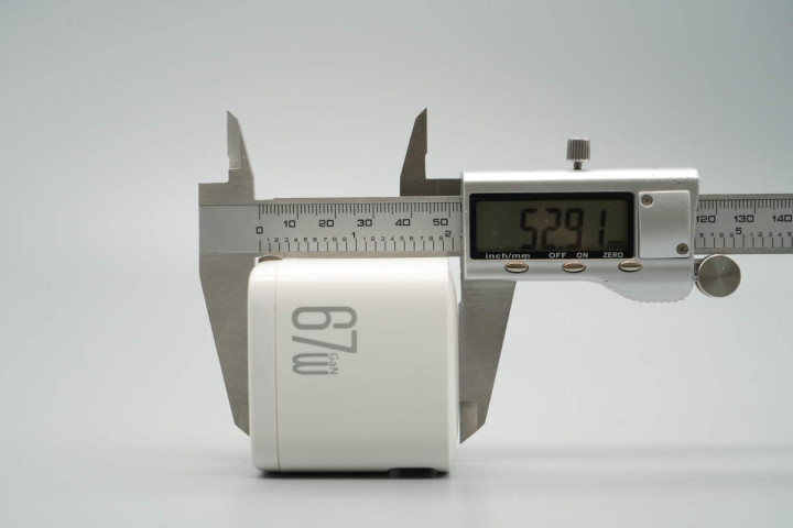 实测充电器机身长度为52.91mm。