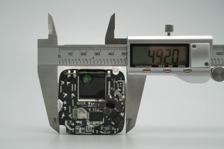 实测充电器内部电源模块长度为50.48mm。