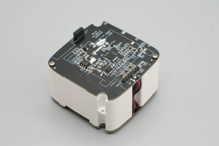 模块上下两块PCB板之间设有塑料壳进行支撑隔离,并且两块板子都通过螺丝与塑料壳进行固定。此外拉拉线模块、数显屏模块通过排针插拔式连接顶部PCB板,组装方便。