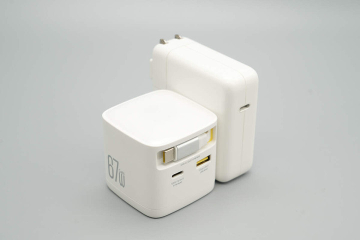 和苹果67W充电器放在一起对比。