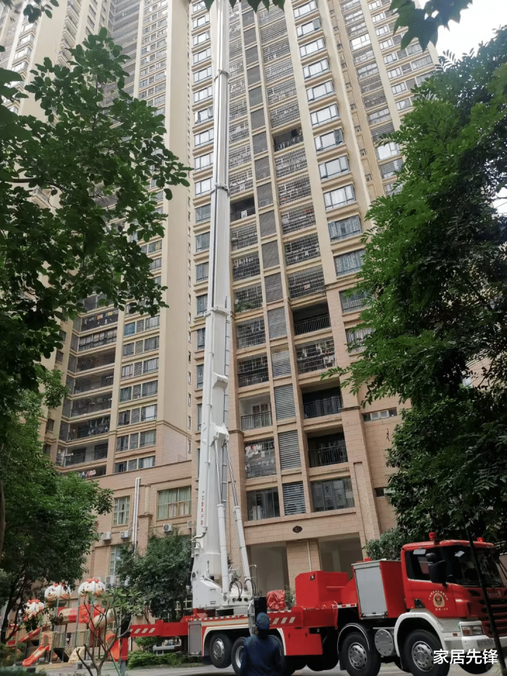 消防车到了以后发现消防云梯根本就达不到27层,一家4口差点就这样出意外了,还好爸爸机智,趁火势还没有大的时候带着一家老小逃了出来,真是想想都后怕。