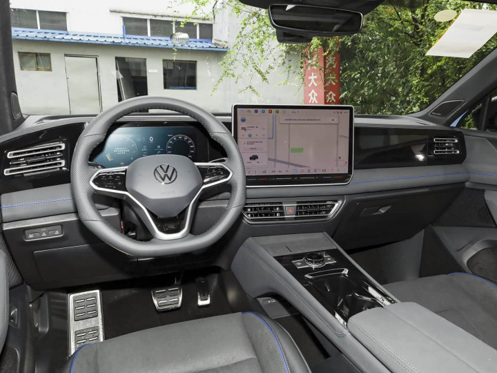 再来看车身侧面部分,车身侧面线条流畅且富有张力,车顶线条从B柱开始微微下压,与腰线形成优美的弧线过渡。R-Line专属的19英寸双色轮毂进一步强化了运动属性,而车顶行李架则兼顾了实用性与美观性。车身尺寸方面,4735mm的车长和2791mm的轴距确保了充裕的内部空间,同时保持了灵活的城市驾驶体验。隐藏式门把手不仅提升了科技感,还优化了风阻系数,使整车风阻系数降低。