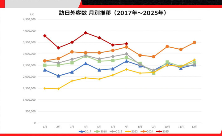日本推行 “观光立国” 政策,游客数量激增。7月日本观光局数据显示,赴日游客同比增长18.4%,其中中国大陆游客暴增47.9%。