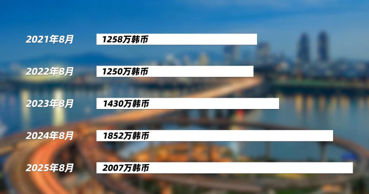 不止日本,韩国房价同样疯狂。2021年8月,首尔每平方米房价1258万韩元(约6.5万元);2025年8月,这一数字升至2000万韩元(约10.3万元)。