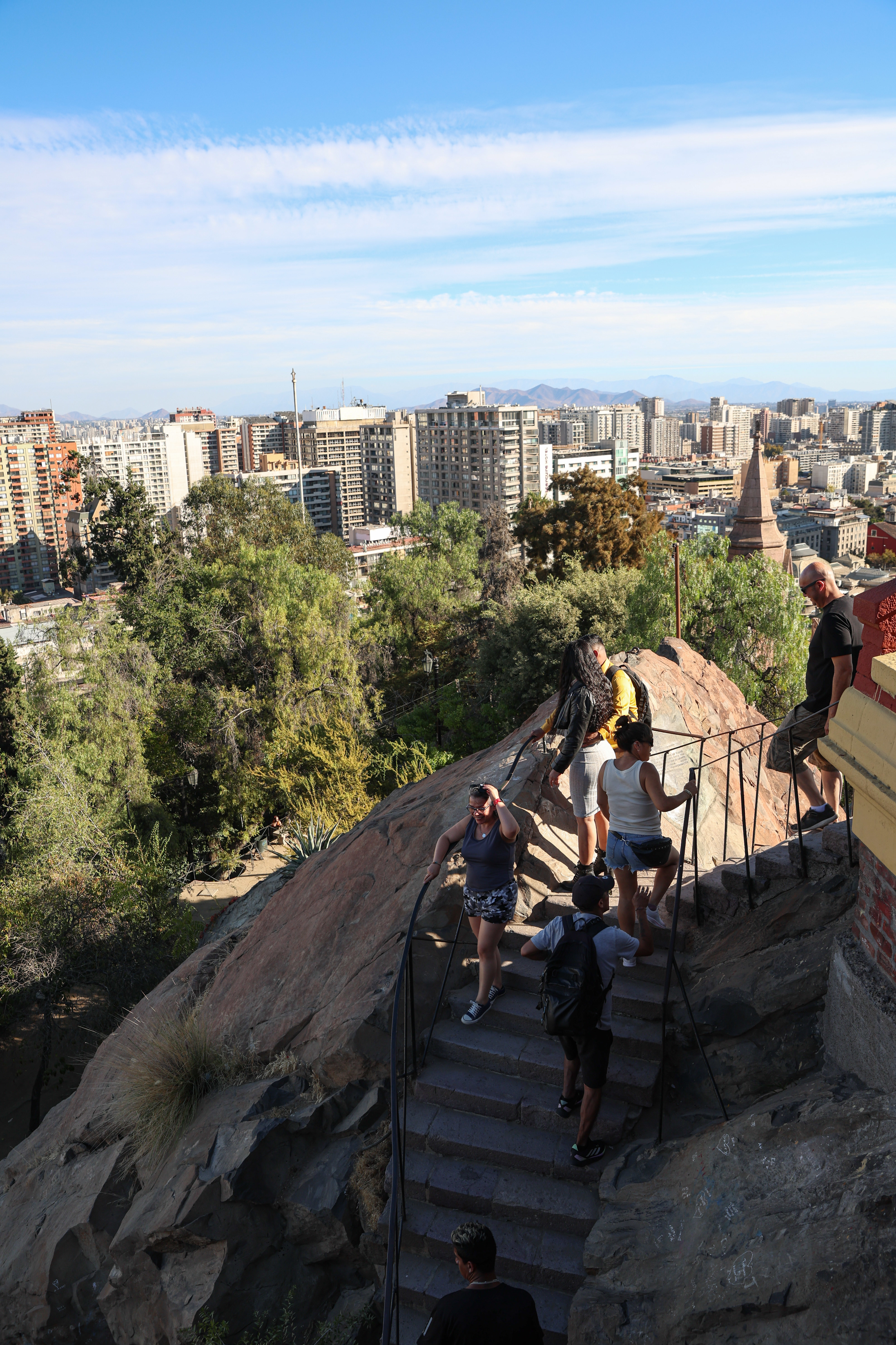 4月5日,人们在智利圣地亚哥的圣卢西亚山公园游览。